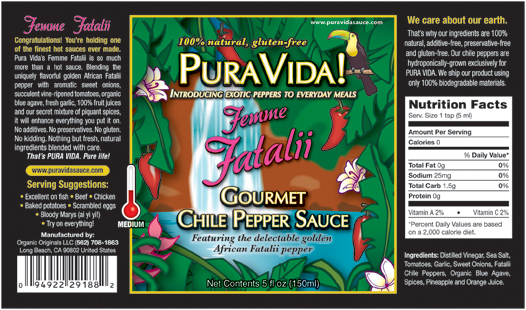 Pura Vida Femme Fatalii Hot Sauce Label